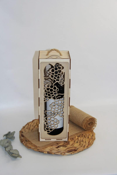 Cutie pentru vin “Struguri” – un accesoriu elegant și tematic, ideal pentru oferirea unei sticle de vin într-un ambalaj deosebit.