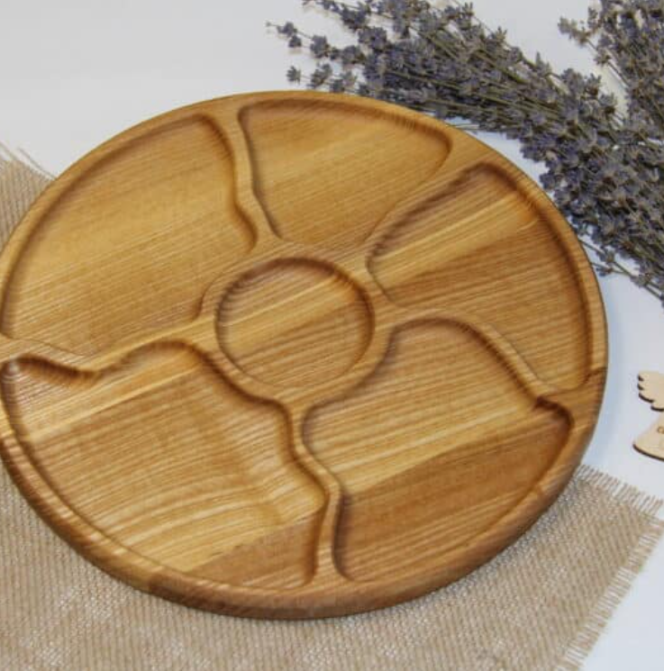 Platou din lemn „Soare” – un platou radiant, cu un design inspirat de razele soarelui, perfect pentru a adăuga un strop de energie pozitivă oricărei mese.